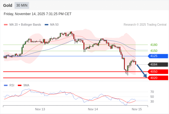 在 4125 之下,看跌,目标价位为 4050 ,然后为 4020 。