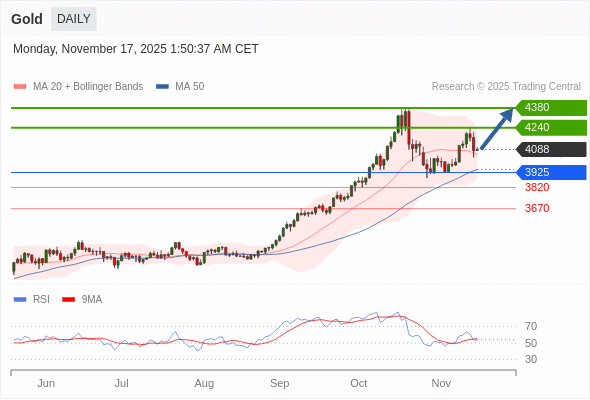 在 3925 之上,看涨,目标价位为 4240 ,然后为 4380 。