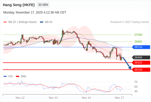 在 26710 之下,看跌,目标价位为 26310 ,然后为 26130 。