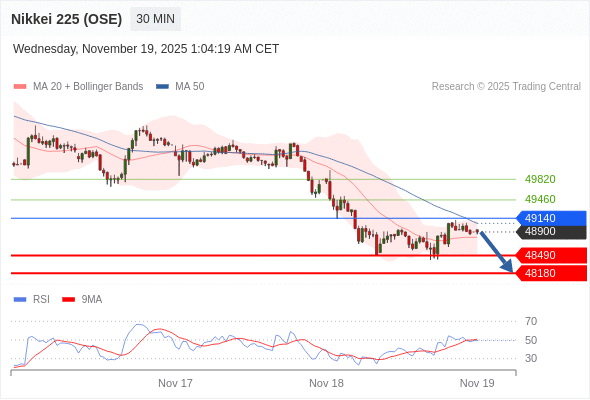 在 49140 之下,看跌,目标价位为 48490 ,然后为 48180 。