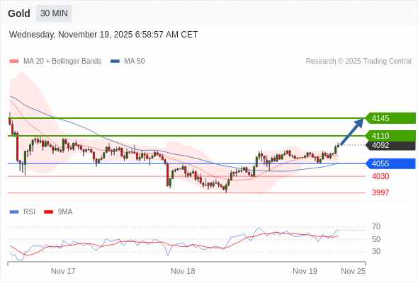在 4055 之上,看涨,目标价位为 4110 ,然后为 4145 。
