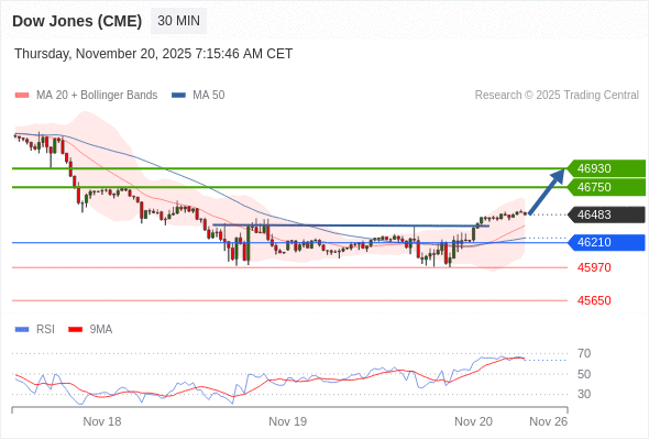 在 46210 之上,看涨,目标价位为 46750 ,然后为 46930 。