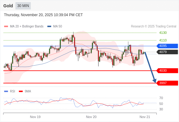 在 4095 之下,看跌,目标价位为 4030 ,然后为 3997 。