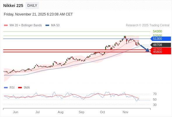在 51300 之下,看跌,目标价位为 46700 ,然后为 45800 。