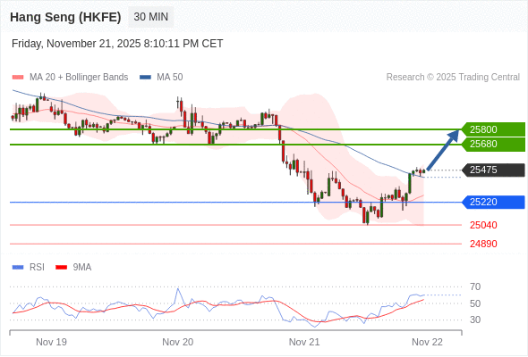 在 25220 之上,看涨,目标价位为 25680 ,然后为 25800 。
