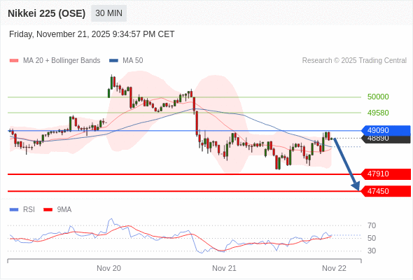 日经225股指期货 (OSE) 当日内: 短期关键阻力位在49090。