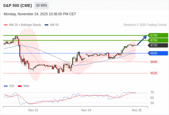 在 6665 之上,看涨,目标价位为 6755 ,然后为 6790 。