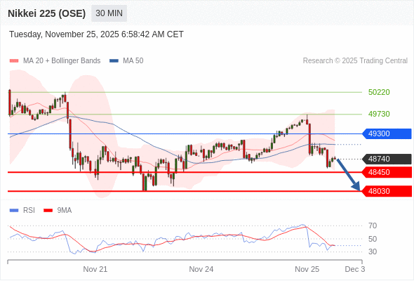 在 49300 之下,看跌,目标价位为 48450 ,然后为 48030 。
