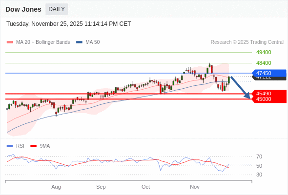在 47450 之下,看跌,目标价位为 45490 ,然后为 45000 。
