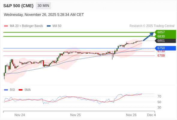 在 6750 之上,看涨,目标价位为 6830 ,然后为 6857 。