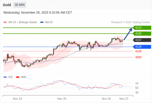 在 4128 之上,看涨,目标价位为 4185 ,然后为 4210 。