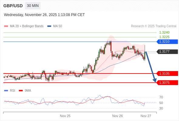 在 1.3210 之下,看跌,目标价位为 1.3105 ,然后为 1.3075 。