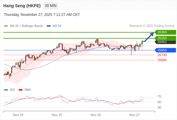 在 25850 之上,看涨,目标价位为 26150 ,然后为 26300 。