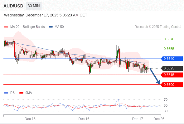 在 0.6640 之下,看跌,目标价位为 0.6615 ,然后为 0.6600 。