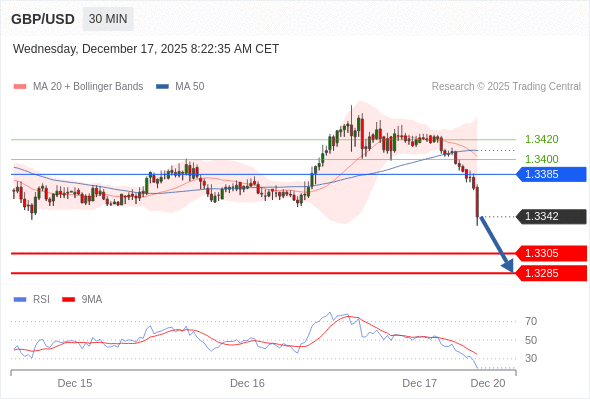 在 1.3385 之下,看跌,目标价位为 1.3305 ,然后为 1.3285 。