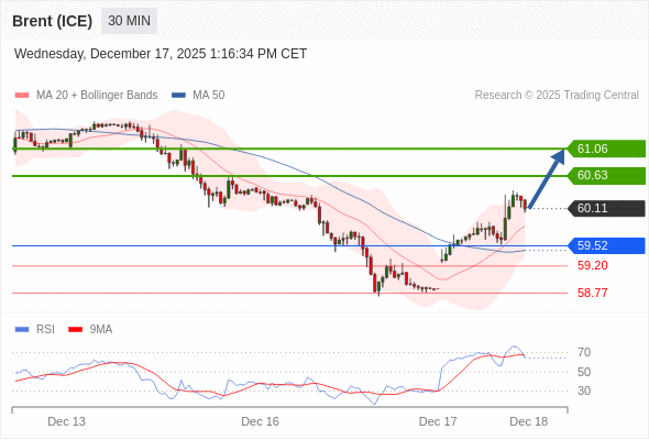 在 59.52 之上,看涨,目标价位为 60.63 ,然后为 61.06 。