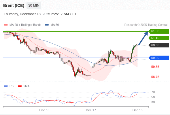 在 59.90 之上,看涨,目标价位为 61.10 ,然后为 61.50 。