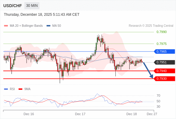交易策略: 在 0.7965 之下,看跌,目标价位为 0.7940 ,然后为 0.7930 。