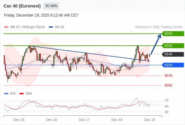 法国CAC指数期货 (Euronext) (Z5) 当日内: 期待8165。