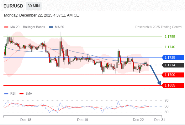 在 1.1725 之下,看跌,目标价位为 1.1700 ,然后为 1.1685 。