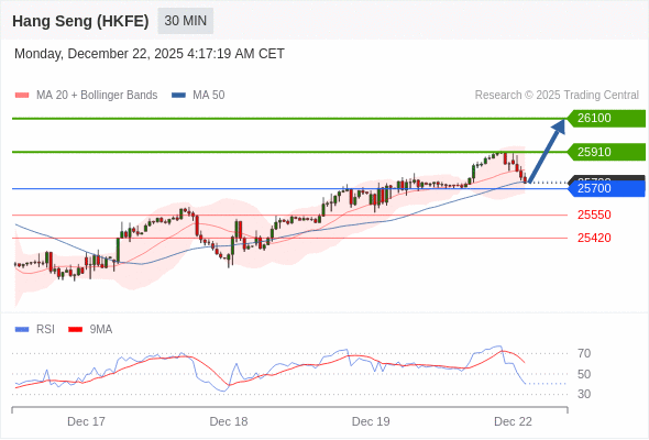 在 25700 之上,看涨,目标价位为 25910 ,然后为 26100 。