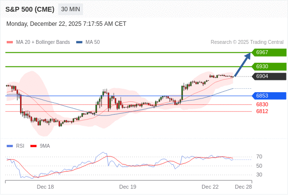 在 6853 之上,看涨,目标价位为 6930 ,然后为 6967 。