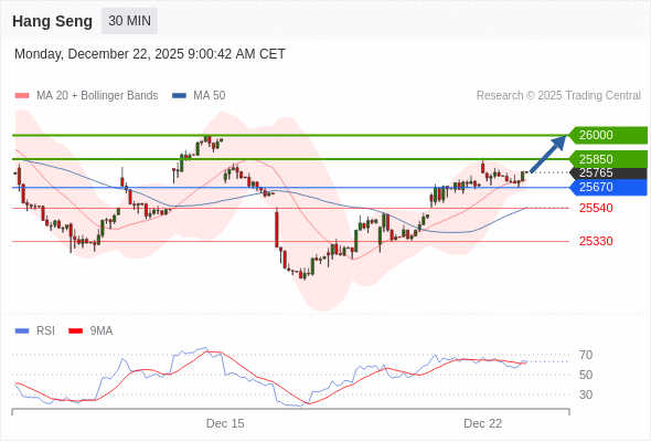 在 25670 之上,看涨,目标价位为 25850 ,然后为 26000 。