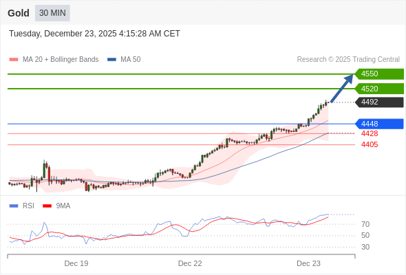 在 4448 之上,看涨,目标价位为 4520 ,然后为 4550 。