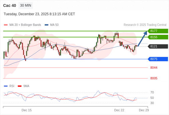 在 8075 之上,看涨,目标价位为 8155 ,然后为 8177 。