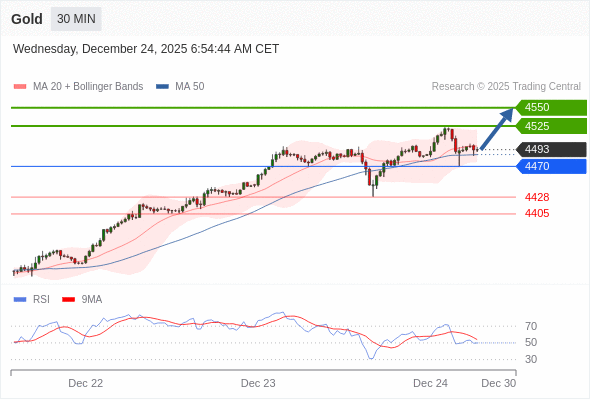 在 4470 之上,看涨,目标价位为 4525 ,然后为 4550 。
