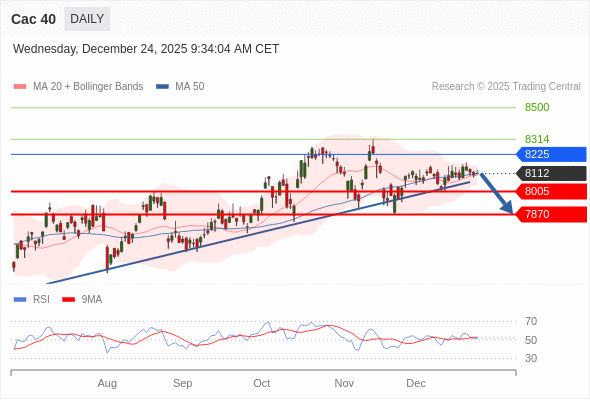 Cac 40 短线: 短期调整。