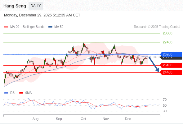 在 26200 之下,看跌,目标价位为 25100 ,然后为 24400 。