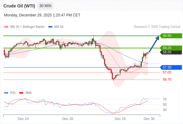 在 57.30 之上,看涨,目标价位为 58.25 ,然后为 58.85 。