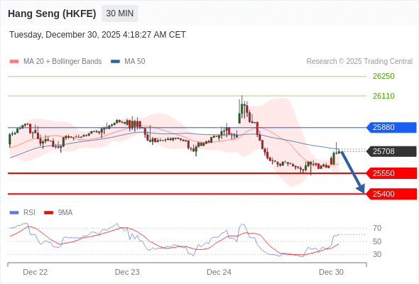交易策略: 在 25710 之下,看跌,目标价位为 25500 ,然后为 25400 。
