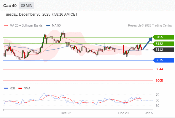 在 8075 之上,看涨,目标价位为 8132 ,然后为 8155 。