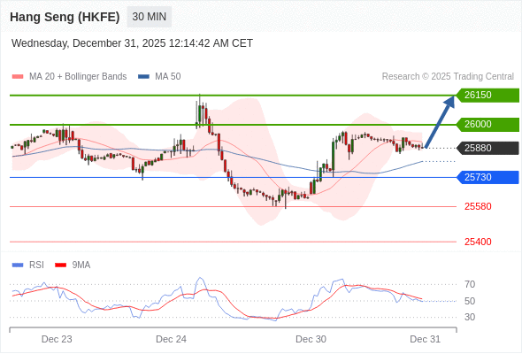 在 25730 之上,看涨,目标价位为 26000 ,然后为 26150 。