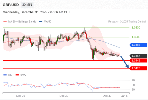 在 1.3485 之下,看跌,目标价位为 1.3445 ,然后为 1.3425 。