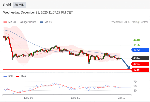 在 4372 之下,看跌,目标价位为 4274 ,然后为 4235 。