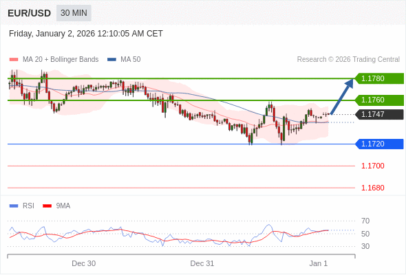 在 1.1720 之上,看涨,目标价位为 1.1760 ,然后为 1.1780 。