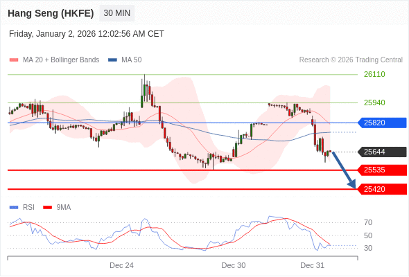 在 25820 之下,看跌,目标价位为 25535 ,然后为 25420 。