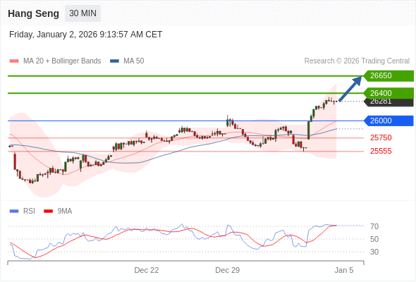 恒生指数 当日内: 朝26650运行。