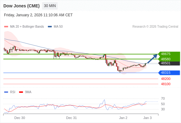 在 48315 之上,看涨,目标价位为 48580 ,然后为 48675 。