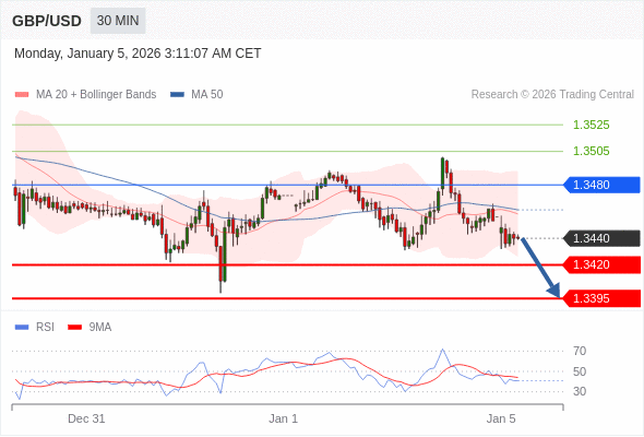 英镑/美元 当日内: 期待1.3420。