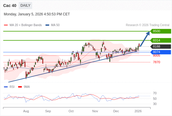 Cac 40 短线: 看涨。