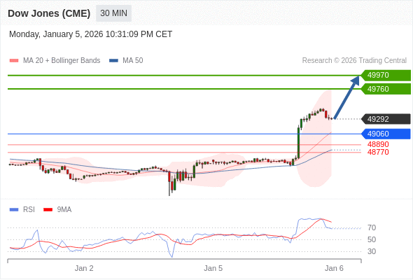 在 49060 之上,看涨,目标价位为 49760 ,然后为 49970 。