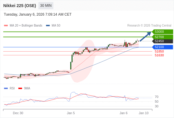 在 52100 之上,看涨,目标价位为 52700 ,然后为 53000 。