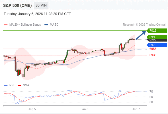 在 6970 之上,看涨,目标价位为 6995 ,然后为 7015 。