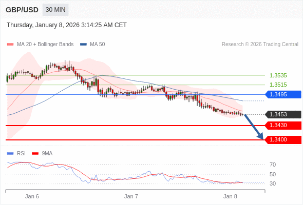 在 1.3495 之下,看跌,目标价位为 1.3430 ,然后为 1.3400 。