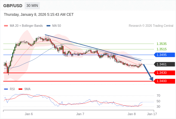 在 1.3495 之下,看跌,目标价位为 1.3430 ,然后为 1.3400 。