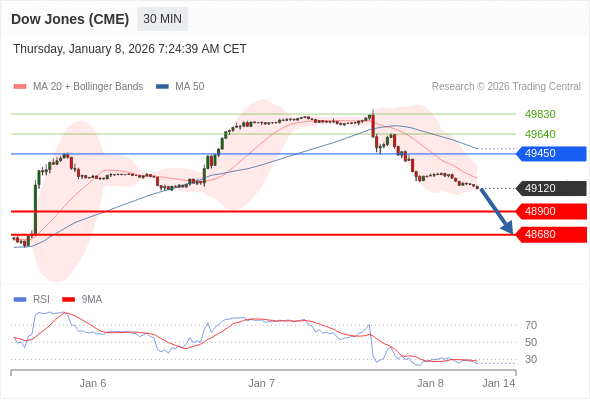 在 49450 之下,看跌,目标价位为 48900 ,然后为 48680 。